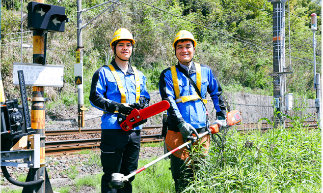 仕事内容 \ 3人1組のチーム制で安心 / 協力会社のスタッフを含むチーム体制で 鉄道の電線周りの安全を守る仕事です。 【主な業務】 □樹木の伐採・除草作業 …在来線・新幹線線路内での電力線、通信線、信号 …JR西日本所有の送電線 …現地・土地の持ち主調査 …伐採許可・補償の交渉 □線路内の列車を見張る業務 など 【入社後の流れ】 まずは先輩について実務を重ねながら線路内作業に関するルールなどを習得。 業務に必須な技能講習を受講したり鉄道ライセンスの取得を目指します。 ▼列車見張員ライセンス取得 ▼作業責任者 ▼現場指揮者ライセンス取得 と、ステップアップ! 若手社員研修、レベルアップ研修、階層別研修もあります。