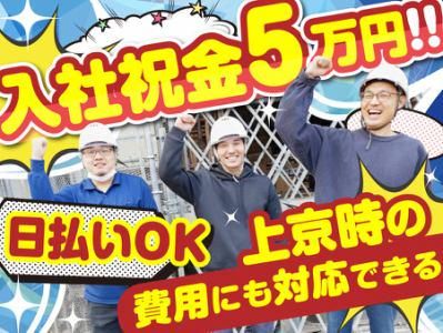 仕事内容 新築住宅の建築現場にて、キッチンや家具などの資材搬入を担当します! <具体的には> ・組み立て前のキッチンやクローゼットの 板状の荷物を2人1組で搬入 ・段ボールの開梱 など 2〜3名を1チームとしたチーム制で作業を進めます◎ 先輩スタッフが丁寧に教えます♪ また、運動やトレーニング感覚で取り組める点も魅力! 資材ボードや鉄骨のような重量物はなく、 キッチンや家具などの未経験でも搬入しやすい資材を取り扱います! トライスターで働く『ココがおすすめ』 ‾‾‾‾V‾‾‾‾‾‾‾‾‾‾‾‾‾‾‾‾‾‾‾‾‾‾‾‾‾‾‾ ✅スタッフの半分以上が地方からの上京組 ⇒上京直後の不安や悩みを分かってくれる仲間が多数 ✅業務量も安定!安定して働けます♪ ⇒月収40万~50万円も可能なため 収入面を重視したい方にも安心です ✅『上京したけど仕事が…』そんな時の即日バイト ⇒履歴書不要&電話面接1回でスピード採用 ✅夢を追いながら働く20代・30代が多数在籍 ⇒役者・バンドマン・フリーターなど、 自分のペースで東京生活を続けたい人に 選ばれています トライスターだからできる高待遇☆彡 ‾‾‾‾V‾‾‾‾‾‾‾‾‾‾‾‾‾‾‾‾‾‾‾‾‾‾‾‾‾‾‾ 💰日払い・週払いOKだから、 ⇒家賃・生活費の不安をすぐに解消♪ 💰道具一式支給=上京時の初期費用ゼロ ⇒作業服・安全靴・ヘルメットなど すべて会社支給 💰入社祝い金5万円は、まるっと生活費に! ⇒出費が多い時期でも安心♪ 💰直行直帰OK&交通費全額支給 ⇒交通費支給なので都内移動の心配なし! ――――――――――――――――――― ⭐①または②の方法ですぐに合否確認⭐ ①「電話面接」簡単な質問に答えるだけ! ②「ネット応募」メールを待つだけ! ――――――――――――――――――― ①電話応募 ■『03-6820-9466』に今すぐ電話♪ (平日は9~18時/土曜は9~15時まで) ■『名前・年齢・住所・希望シフト』など 簡易的な質問に答えるだけ♪ 選考通過者にはその場で最終面談(雇用登録)のご案内を行います★ ②ネット応募 ■1分で簡単!スピード選考! ■「応募画面へ進む」から必須項目を入力 ■応募完了後にメールが届きます! 『弊社から電話が可能な日程』または、 『メールの質問に返信するだけ』 ♪ 選考通過者には最終面談(雇用登録)のご案内を行います★ …………………………………………………… 【雇用契約・勤務場所について】 雇用契約の締結先は 「株式会社トライスター」となります。 勤務場所は請負先での勤務となりますので、あらかじめご了承ください。