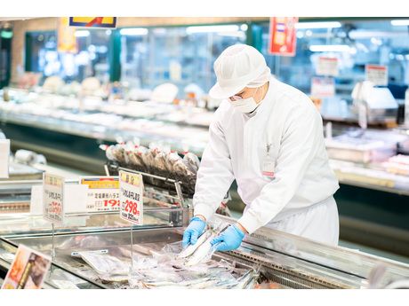 お仕事内容 **パック詰め・品出しについて** ・商品製造~パック詰め、味付け ・ラベル張り~商品の値付け、シール貼り ・品出し~売場での陳列作業 ・その他付随作業~段ボールの片づけ、清掃 詰め物や盛り付け作業がメインなので 魚は捌けなくても大丈夫です! もちろん刺身を切りたい、三枚おろしを覚えたい方には担当者が丁寧に教えますのでぜひご応募ください。 **お寿司の製造について** 基本はシャリにネタをのせるだけの作業です。 作業になれてきたらネタを切るのも任せします。 柵取りなどは別スタッフがするのでご安心ください♪