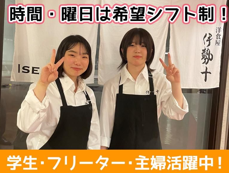 仕事内容 「体を動かす仕事が好き」 「定年退職したけど、まだまだ現役で働きたい」 そんな体力自慢の方に。 ✨――――――――――――――――✨ ✨求人の魅力 ――――――――――――――――――― ✅ 時給1300円~1600円 ✅ 接客なし ✅ 土日祝は定休 ✅ 駅直結ビル ✅ 15時あがりOK ✅ まかない付き (ランチ時間終了後みんなで食べます) ――――――――――――――――――― ✨この仕事のやりがい ――――――――――――――――――― ランチのピークタイムは戦場! 山積みの皿をピカピカにして片付けた時の 「達成感」は格別です。 お店の回転を支える縁の下の力持ち。 ――――――――――――――――――― ✨仕事内容 ――――――――――――――――――― ✅食器や調理器具の洗浄 ✅簡単な盛り付け補助 ✅食器洗浄 ✅厨房内の清掃 ✅ゴミ出しなど 名物の土鍋ハンバーグなど 重量のある器具を扱う力仕事もあります。 <お店のコンセプト> お店のコンセプト 松阪牛の老舗「伊勢十」 が手掛ける洋食店。 高級食材をリーズナブルに提供し、 日常のちょっとした贅沢をお届けしています。 ――――――――――――――――――― ✨応募を迷っている方へ ――――――――――――――――――― 難しいことはありません。 「体を動かして働きたい」 などという気持ちがあれば、 年齢に関係なく活躍できる現場です。 ご応募お待ちしております!! ―――――――――――――――――――