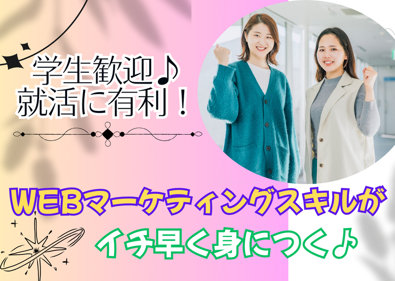求めている人材 【必須】 ・パソコンの基本操作・入力ができる方 【歓迎】 ・大学、大学院、専門学校などに在学中の学生さん ・WebマーケティングやECサイト運営に興味がある方 ・Excel(データ入力、簡単な集計など)の操作経験がある方 【こんな方におすすめ】 ・就職活動を有利に進めたい方 ・ビジネスの現場を体験し、社会人スキルを身につけたい方 ・Web業界やマーケティング職に興味がある方