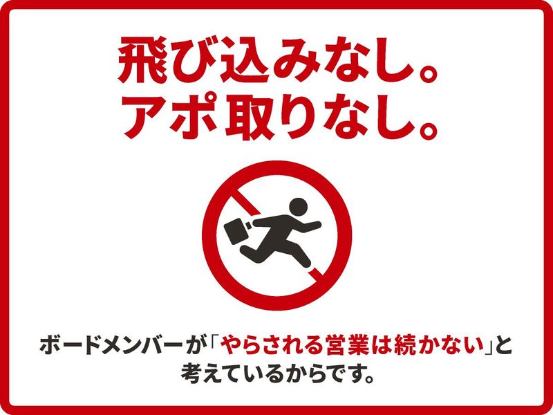 仕事内容 ★- ノルマなし・アポ取りなし。 “自分らしさ”取り戻そう!! -★ 簡単な「IT営業あるある」診断です。 あなたは、いくつ該当しますか? ☐「正直、何を売ってるか不明」 ☐「提案の幅が広すぎて疲れる」 ☐「アポ取りがキツイ」 ☐「数字成果、ノルマ強め」 ☐「受注までに時間がかかる」 ☐「他社と比較され続ける」 全部→今すぐ行動を! 1個以上→先へスクロール 0個→もしかして当社の人!? 毎日、営業お疲れ様です。 もし、あなたが今の環境で、 「売りにくい×難しい×重圧」 そんな“IT営業の三重苦“にお悩みなら、 GENZで変わるタイミングかも。 ▼ ▼ ▼ 当社は、企業の新しいアプリやシステムが 世に出る前に、品質や不具合をチェック するサービスを提供しています。 「テスト・検証」に特化しているため、 売りにくさ・難しさは一切なし。 アポ取りはインサイドセールスが担当。 商談先探しは不要です。 あなたは「フィールドセールス」として、 お客様の課題をヒアリング。 決まったサービスの提案を行うだけ。 ノルマもなく、数字に追われることもなし。 気持ちにゆとりが生まれる好循環。 お客様はすでに展示会で面識済み。 受注確度はかなり高め。 時間がかかることも、比較されることも、 ほとんどありません。 優秀な開発エンジニアが商談に同行。 IT知識へのサポート体制は万全です。 このように、 従来の「IT営業あるある」とは無縁。 あなたはお客様と向き合うことに集中。 結果、末永い信頼関係が構築可能です。 単なるテスト業者から “協業するパートナー”へ。 やりがいを感じながら成長できます。 インフラ・金融・医療・教育・流通・ 小売・人事・マーケティングなど、 あなたを必要としているお客様が、 多数スタンバイしている状況です!! ★- GENZは急成長の真っ只中。 次の50億円を目指して。 -★ 世の中のDX化が進むほど 不具合は、企業にとって信用問題。 テスト需要も拡大し、 展示会では名刺が3000枚以上集まります。 そんな追い風を受けて、 すでにこの事業だけで売上30億円。 「ソフトウェア品質管理」分野に特化し、 国内No.1のシェアとなりました。 社員数は250名。 社内にも上昇ムードのいい空気が充満中。 もともと旧態依然としたルールに 馴染めなかったメンバーが立ち上げた会社。 自由な企業風土が心地よく、 髪型も服装も自由。 上限関係なし、社長との距離も近いです。 リモート勤務、副業OK。 植物が植えられた快適なオフィスは、 もちろんフリーアドレス。 毎日、新鮮気分で営業に専念できます。 自分らしさを取り戻して仕事したい。 ポジティヴになって生まれ変わりたい。 今、頷いたあなた。 GENZで再始動ですね!!