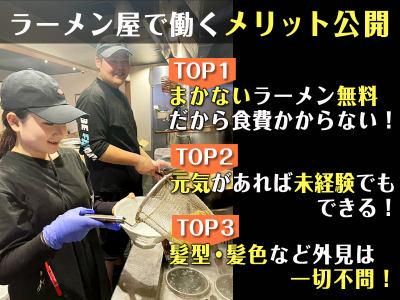 仕事内容 ✨===ランチTIME募集!===✨ ✅まかないは無料で味噌ラーメン! ✅髪型・髪色・ピアスなど外見自由 ✅週1日~1日4h~希望シフト制! ✨==============✨ ■お仕事内容の詳細 ・料理提供 ・盛り付け ・洗い場 等 簡単なお仕事! ※食券制でレジ業務は一切なしです ◆時給UPチャンスは日常の作業に沢山♪ ・シフトに入ってくれる ・スタッフのヘルプを積極的にする ・麺上げ/盛り付けが上手になる ・挨拶/礼儀がしっかりしている ・トイレ掃除をすすんでやってくれる などなど お任せできる仕事が増えたら随時昇給があります! 未経験からスタートして3日で昇給したスタッフもいますよ! ー ☆店長含め20代~30代が多く在籍中♪ ☆髪色・髭・ピアス・タトゥー自由◎ まずは職場の雰囲気を知ってください♪ ※職場見学OK ー VーVーVーV 応募のきっかけベスト3 1位:らーめん屋はメニュー少なくて楽そう 2位:まかないのらーめんが無料! 3位:髪色・髪型・ネイルなど自由! ※気軽に応募してネ!
