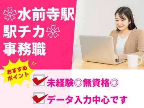 仕事内容 \ここがポイント/ ★熊本県熊本市中央区(水前寺駅近く)での事務のお仕事! ★無資格・未経験OK!簡単なパソコン操作ができればOK! ★経験者の方は採用面で優遇! *・。・。*・。・。*・。・。* <仕事内容> オフィスでの事務業務全般をお任せします。 主にパソコンを使ったデータ入力や、書類作成、 電話応対などの簡単な事務作業が中心です。 パソコン操作の基本スキルがあれば、 未経験でも問題なくスタートできるお仕事です。 経験者の方は、スキルを活かしてさらに活躍できます。 ◎週休2日制で、無理なく長く働ける環境! 未経験者も経験者も、それぞれのペースで成長できるサポート体制が整っています!◎ *・。・。*・。・。*・。・。*