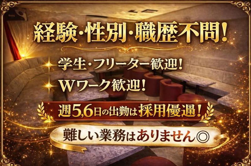 勤務時間詳細 ⏰17:30〜翌1:30 ⏰上記時間内で,1⽇3時間〜OK︕ ⏰週3⽇〜OK︕ ⭐短期OK︕ 春休み中だけでも⼤歓迎︕ ⭐終電考慮︕ ⭐⽊⾦⼟の週3⽇歓迎︕ ⭐週5,6⽇の出勤は採⽤優遇︕ 「ガッツリ稼ぎたい︕」 「かけもちしたい︕︕」 「プライベート優先で稼ぎたい︕」 などなど♪ アナタに合った働き⽅が きっと⾒つかる⾃由シフトです☆⼺ 学校の授業スケジュールに合わせた シフトや、テスト期間中の調整も 相談OKです︕ ちなみに…♪ *モデル *芸⼈ *ミュージシャン *演劇役者 *ダンサー など 夢と⽣活を上⼿に両⽴したい 頑張り屋さんも応援します︕︕︕ オーディションや稽古・練習を 優先したい⽅も働きやすい お店ですよ︕