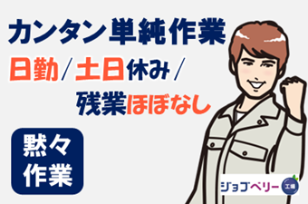 仕事内容 \\新規オープニング★★//【超カンタン単純作業☆】小物部品箱詰、製品の検品作業時給1,340円☆土日休みで日勤専属 <仕事内容> 小さい金属製の部品を、お客様に出荷するために箱詰めして、箱にラベルを張って、出荷前のパレットに乗せるだけ! ライン作業ではなく、体も動かせるので飽きずに続けられますよ! モクモクと単純作業をするのが好きな方は必見です!! その他、出荷作業をお手伝いいただく部署、フォークリフト作業をする部署も同時募集中です☆ 立ち作業です。 個人作業になります。 《職場環境》 男性が多い職場 アピールポイント <仕事内容> 小さい金属製の部品を、お客様に出荷するために箱詰めして、箱にラベルを張って、出荷前のパレットに乗せるだけ! ライン作業ではなく、体も動かせるので飽きずに続けられますよ! モクモクと単純作業をするのが好きな方は必見です!! その他、出荷作業をお手伝いいただく部署、フォークリフト作業をする部署も同時募集中です☆ 立ち作業です。 個人作業になります。 《職場環境》 男性が多い職場 \充実した福利厚生/ ◎社会保険・雇用保険完備 ◎有給休暇有(6ヶ月経過後、10日付与)※規定あり ◎残業手当 ◎交通費支給(規定内) ◎確定拠出年金制度 ◎週払い制度(週3回対応) ◎お友達推薦制度あり(規定有り) ※1名につき3万円~10万円臨時給与として支給 ◎職場見学あり ◎車(マイカー)・バイク通勤可 ◎制服貸与 ◎食事持参可 ◎社員食堂あり(1食270円) ◎福利厚生プログラム (宿泊、グルメ、ショッピングなど大幅割引が受けられる10万アイテムのメニューがあります。)