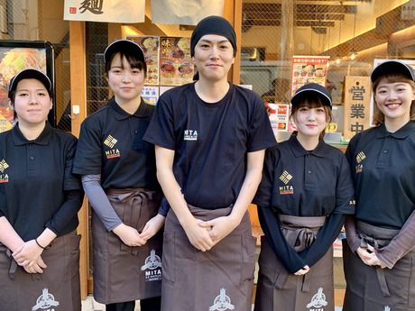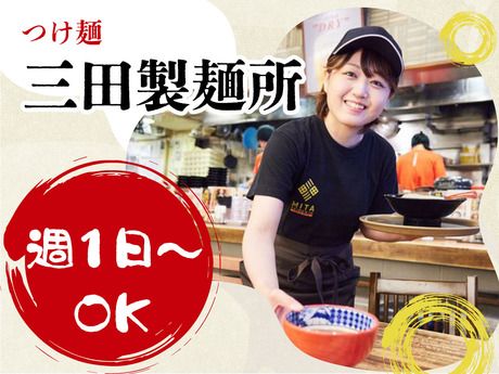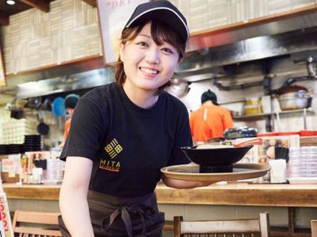 仕事内容 【仕事内容】 つけ麺専門店 三田製麺所でのホールスタッフ。 お客様のご案内・商品提供・注文など基本的な接客をお願いしています。 飲食未経験やバイトデビューの方も大歓迎! まずは来店したお客様のご案内や配膳、片付けなど、簡単なお仕事からスタート。 慣れてきたら、ご注文確認、レジ打ちなど接客全般をお任せします。 メニュー数が多くないところも、はじめやすいポイント◎ モバイルオーダーも導入中です♪ 優しい先輩たちが多いのも三田製麺の自慢! 分からないことがあったら、何でも聞いてくださいね! 研修&マニュアルもあるので、フォローもばっちりです。 【ブランドについて】 三田製麺所は、つけ麺専門店です。 「こだわりの一杯」を提供し、お客様に感動と幸福を提供しています。 提供するのは、こだわって作ったオリジナル濃厚豚骨魚介つけ麺。 スタンダードなものはもちろん、 灼熱つけ麺、鯛だしつけ麺 濃厚海老つけ麺…など 季節に合わせたメニューや、から揚げも人気! 提供する側も楽しめるお店です。 【嬉しい福利厚生1】 ■日払いOK!(規定あり)毎日が給料日!携帯申請のみで翌日には、お給料をゲット! ■感謝マイレージ制度あり:貯まったポイントは優待券や電子ポイントに交換◎ ポイント獲得例>勤務日数、他店舗へのヘルプ、繁忙期シフトインなど、 活躍していただくための仕組みがたくさんあります♪ 【嬉しい福利厚生2】 ■社員登用制度あり …毎年10名前後の方が社員になっています。 正社員を希望の方もご相談ください。 その他にも ■まかない補助 ■交通費支給 ■制服無料貸与 ■昇給あり ■髪色・髪型自由 ■雇用保険完備 ■産休・育休取得実績あり ■昇給あり ・昇給額 :平均10円~140円(1回あたり) ・回数 :年3回(4ヶ月に1回) ・反映時期:決定月の翌月分給与から反映 ・評価方法:当社指定のスキルマップの習得具合を評価 ・・・などメリット多数♪ 【エムピーキッチンホールディングスとは】 『すべての人に、満腹と幸福を』を企業理念に創業から走り続けてきました。 当社は、三田製麺所、渋谷餃子、日本橋とんかつ一(HAJIME)、八宝亭など、 幅広いジャンルで多数ブランドを展開。 国内のみならず、海外にも店舗進出中。 株式上場も視野に入れているフードビジネス企業です。