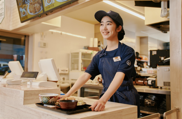 サービスエリア内フードコートの牛丼屋スタッフ