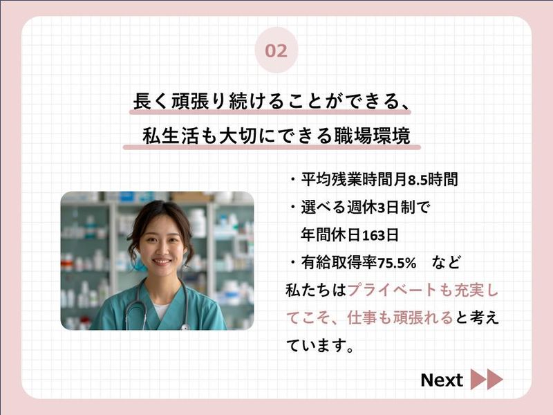 選考プロセス 【✨応募後の流れ✨】 1.応募 ↓ 2.担当者より面接日程の調整などの ご連絡をさせて頂きます。 ↓ 3.面接実施(1回だけ) ↓ 4.内定合否のご連絡 ↓ 5.入社手続き等 ※応募前職場見学OKなので、お気軽に ご相談ください。 ※在職中など今すぐの転職が難しい 方も、ご相談ください。 ※ご応募は求人内の応募フォームからのみ受け付けております。
