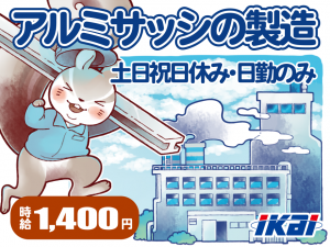 アルミサッシに使用する小さい部品の組付/土日祝休/時給1400円