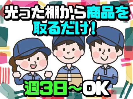仕事内容 スキャナーやランプに従って、棚から食品を取り出し、カートへ積むだけの軽作業! お菓子や飲料を扱うため重い物はほぼナシ◎ 空調完備の快適倉庫で、 未経験から始めたスタッフも多数活躍中! 7時・8時・9時スタートの選べる時間帯&週3日~OKで働きやすさ抜群。 主婦・シニア・Wワーカーまで幅広く在籍しており、扶養内や副業との両立も◎ 無料送迎や週払い制度など、福利厚生も充実しています! 【週3日~OK×選べる時間帯◎軽作業デビューも安心!副業や家庭との両立にもピッタリ♪】 棚に表示される指示に従い商品を取って台車に積むだけ◎ 空調完備で暖かい現場&未経験も安心のカンタン軽作業! <Q&A>入社までの流れについて Q. 応募してからどれくらいで働けますか? A. 応募から入社までは、1週間~通常2週間以内の現場が多くなっています。 Q. 急いで仕事を始めたいのですが対応してもらえますか? A. 即日面談やスピード対応が可能な案件もご案内可能! ご希望をお伺いして、最短で就業できるお仕事をご紹介いたします。 Q. 他の仕事と比較してから決めたいのですが、相談だけでも可能ですか? A. もちろん可能です。 複数の選択肢をご提示しながらご案内します! <Q&A>収入について 【お給料の支払いについて】 Q. 日払いは対応していますか? A. はい、日払いに対応しています。 前日の11時までに申請⇒当日の夕方までにお給料をお受け取りいただけます。 Q. 夜勤の場合でも日払いは可能ですか? A. はい、夜勤後も対応可能です。 お仕事終了後、朝11時までに申請⇒その日のうちにお給料をお受け取りいただけます。 Q. 前払い制度はありますか? A. ご利用可能です。 詳細は勤務先や就業形態によって異なりますので、ご相談時にご希望をお伝えください。 Q. 申請方法は難しいですか? A.どなたでもスムーズにご利用いただけます。 スマートフォンやPCからの申請も可能です!