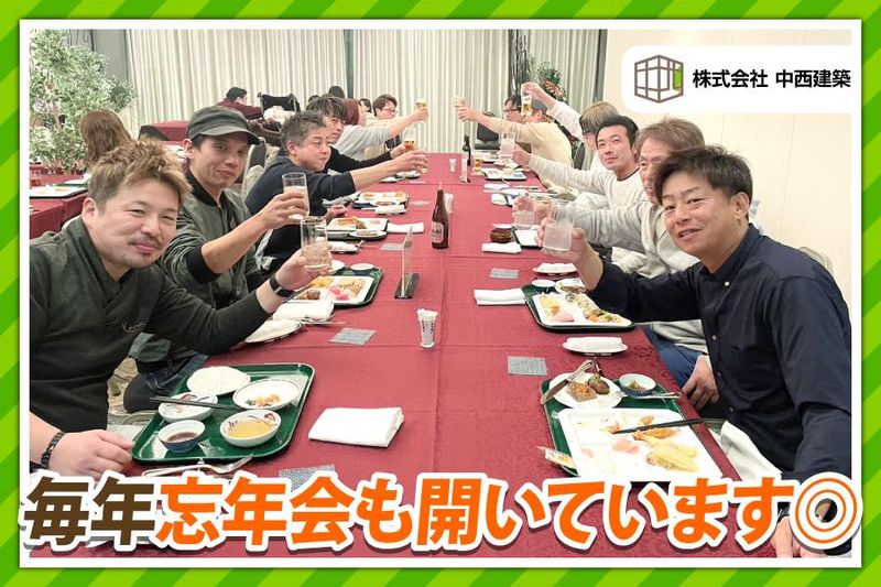 職場環境 中西建築では、コロナ禍で現場がストップした時期もスタッフ全員の収入を補償しました。「僕にとってスタッフは家族。感謝しかないんです。こういう状況のとき、会社が自腹切ってでもスタッフの暮らしを守るもんやと思っています」と社長。その考えを行動で示し続けています。 スタッフ同士の人間関係も非常に良く、遊びに出掛けたり、食事に行くことも。自由参加でありながら、前のめりで参加するスタッフの多さが関係性の良さを物語っています。「この会社がみんなの居場所になれたら。それが1番嬉しいです」そんな社長の思いが社風に表れています。