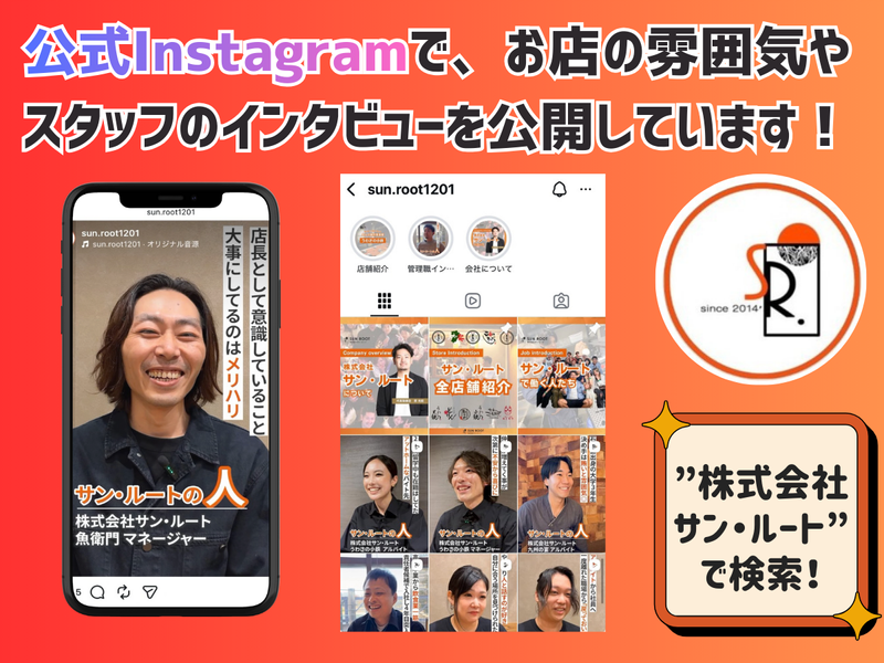 職場環境 初バイトの学生さんも、先輩と一緒に日々成長しながら活躍中✨ 10~30代の男女が助け合って働いています♪ ✅インスタでお店の雰囲気公開中✅ 検索▶@sun.root1201 https://www.instagram.com/sun.root1201/
