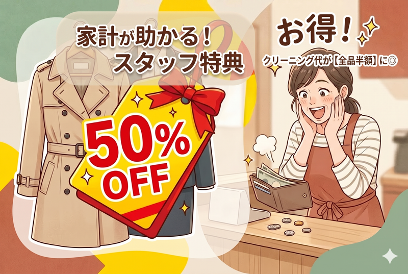 仕事内容 \ 40~50代の主婦さん活躍中! / ┏ ━━━━━━━━━━━━━━━ ┓ 家庭と両立!扶養内OK♪ クリーニング屋さんの受付スタッフ ┗ ━━━━━━━━━━━━━━━ ┛ ⭐クリーニング代半額/時給1,250円 ⭐週2日~OK/午前のみ・午後のみOK ⭐未経験歓迎/制服貸与あり ⭐扶養内勤務・WワークOK 「久しぶりのお仕事復帰」という方も、 「お洗濯の知識を活かしたい」という方も♪ 無理なく、長く続けやすいお仕事です◎ ━-━-━-━-━-━-━-━-━ < 具体的なお仕事内容 > ━-━-━-━-━-━-━-━-━ お客様の衣類をお預かりし、 点検やお会計を行うシンプルな業務です。 難しい機械操作や重労働はありません! レジ操作もシンプルなので、 機械が苦手な方もすぐに覚えられます◎ 専門的な知識は働きながら 少しずつ身につけていければOK♪ \\ 安心のサポート体制 //  ̄ ̄ ̄ ̄ ̄ ̄ ̄ ̄ ̄ ̄ ̄ ̄ ̄ ̄ ̄ ̄ ̄ ①受付・接客 ・お客様からお洋服をお預かり ・仕上がったお洋服を笑顔でお渡し ②点検・タグ付け ・ポケットに物が入っていないか確認 ・シミやほつれの有無をチェック ・お預かり品にタグ(目印)を付ける ③レジ・事務 ・お会計業務(シンプルな操作です) ・電話対応(仕上がり日の確認など) 持ち場はありますが、スタッフ同士で 「このシミはどうかな?」と声をかけ合いながら 進めていくので、一人で抱え込むことはありません。 未経験でも安心してスタートできます◎ ★ー・ー★ー・ー★ー・ー★ー・ー★ 主婦さんに選ばれるポイント♪ ★ー・ー★ー・ー★ー・ー★ー・ー★ ✅シフト融通◎「午前のみ」「平日のみ」OK ✅家計に嬉しい!自分や家族のクリーニング代が半額 ✅40~50代が中心!同世代が多くて安心 ✅身体への負担少なめ!適度に動けて健康的 ✅ブランクOK!丁寧な研修で復帰を応援 子育てが落ち着いた方や、 テキパキ動くのが好きな主婦さんが活躍中! 地域に愛される穏やかな雰囲気のお店です。 「家事の合間を有効活用したい」 「長く安定して働ける場所を探している」 そんな方にぴったりです◎ 少しでも気になった方は ぜひご応募ください♪