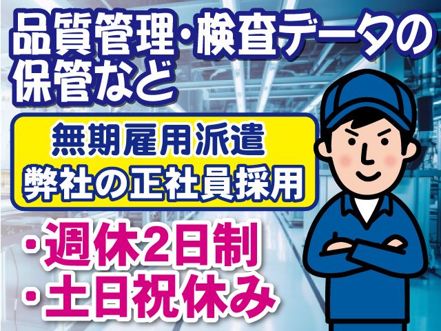 野田市尾崎/当社採用の正社員雇用/ 品質管理・検査データの保管など/ 未経験の方も大歓迎/土日祝休み