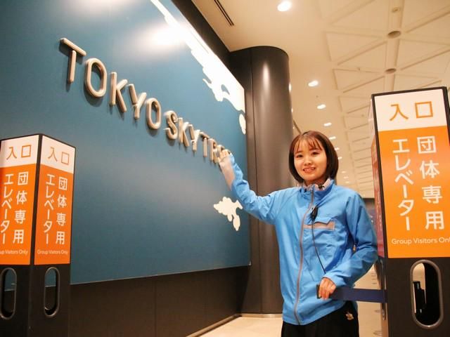 仕事内容 日本を代表する施設「東京スカイツリー」の 団体フロア運営スタッフを募集! 友達や家族にちょっと自慢できる、 めずらしいお仕事です! 東京スカイツリー団体フロアには、 全国から修学旅行生や、 海外からの団体旅行客の方々など 様々なお客さまがいらっしゃいます。 そんな皆さまを 東京スカイツリー展望台にご案内! 皆さまの想い出を作る、 とてもやりがいのあるお仕事です。 - <具体的な仕事内容> ・団体チケットの発券・清算 ・団体バス駐車場の駐車場料金の精算 ・レジ開け・レジ締め作業 ・その他、団体フロア誘導・観光バス誘導等 - 数ヶ月は誘導業務を経験し 成長を見ながらカウンター業務に ステップアップしていきます♪ ※成長速度は人それぞれですが 入社後数か月でカウンター業務に 進んでいる方もいます! ※カウンター業務をマスターした後も 誘導業務を交えながらの勤務となります。 <入社直後の業務> ・団体フロアでの誘導・ご案内業務 ・観光バスの案内誘導 ・その他接客業務 「難しそう」と思われるかもしれませんが、 先輩達も皆未経験からのスタート。 しっかり研修を行うのでご安心ください。 - ★半年に1度の評価制度により★ ★昇給の可能性有★ - <メリハリのある仕事です!> 団体のお客さまの多い時間帯については 他スタッフ共に連携を取りながら、 テキパキ誘導案内を行いますが 団体さまの少ない時間帯は、 自分のペースで個人のお客様への 館内案内を丁寧にお願いします。 - 「人と関わることが好き」 「自分の接客で喜んで欲しい」 そんな人にピッタリのお仕事です。 とは言っても、接客経験は不問! 仕事を通してスキルを身につけられます♪ - ここでしか経験のできないお仕事です。 東京スカイツリーの顔として、 お客さまの「想い出」に残る 笑顔とお客様対応で おもてなししましょう! -
