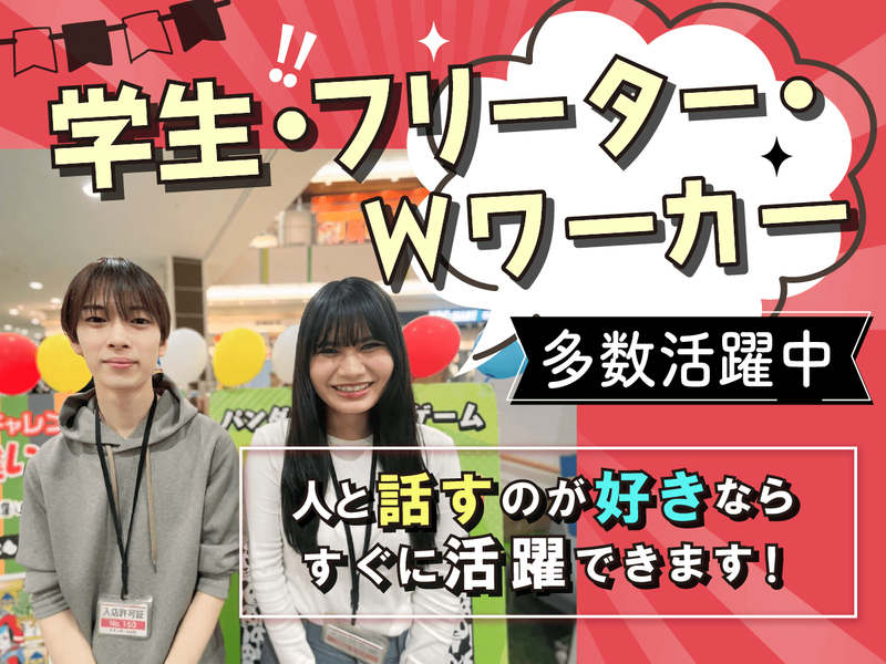 仕事内容 / スマホや料金プランについて、 お客様に「興味のきっかけ」を作る ご案内のお仕事✨ \ 【 この求人のポイント!】 ⏩日給1万6000円〜の高収入! ⏩インセンティブでさらに稼げる ⏩契約業務ゼロで気楽にスタート♪ ⏩20~30代のスタッフ活躍中! ・・━━・・━━・・━━・・━━・・━━・・━━・・ 携帯ショップや家電量販店にて、 ▶スマホや料金プランの簡単なご案内 ▶興味を持ったお客様をスタッフへお繋ぎ …といったシンプルなお仕事です! ✨契約・クロージング・ ノルマなどは一切なし✨ お任せするのは販売ではなく “案内専門”のポジション。 むずかしい説明も不要で、 お客様との会話ができればOK◎ 「どう声をかければ 興味を持ってもらえるかな?」 ──と、工夫しながら取り組むのも この仕事のおもしろいポイント。 最初に研修があるので、 未経験でも心配いりません! 安心してスタートできる環境です◎ ✨将来に役立つスキルが身につく!✨ 同世代のスタッフと動きながら、 会話力・提案力・立ち振る舞いなど、 今後どんな仕事にも活かせる スキルが自然と身につきます! ・・━━・・━━・・━━・・━━・・━━・・━━・・ ◥◣ 勤務地 ◥◣ ショッピングモールや 携帯ショップ、家電量販店 など ※ご自宅から近い場所を優先して紹介◎ ◥◣ 働き方 ◥◣ 学生さん・フリーターさん・ Wワーカーさんが多数活躍中✨ 週2日〜の無理のないシフトで、 学業や本業との両立もラクラク♪ 勤務は土日祝が中心ですが、 高日給1万6000円〜で しっかり稼げます! 加えてインセンティブもあるため、 頑張りがそのまま収入アップに つながるのも魅力です◎