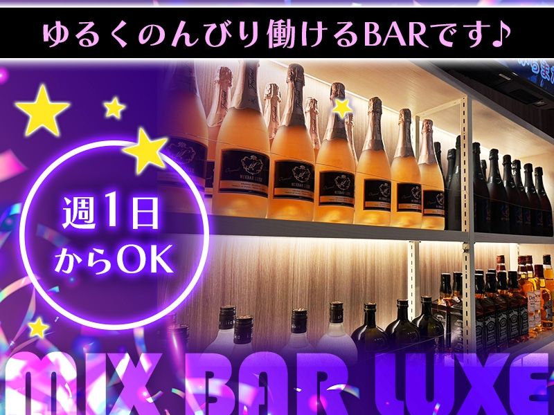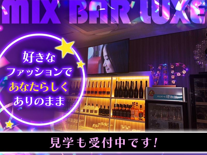 仕事内容 【MIX BAR LUXEのお仕事ってどんな感じ?】 LUXEのお仕事は、見た目はちょっとバーテンダー風なのに、やってることはびっくりするほど気軽。難しいスキルや堅苦しいマナーは一切なしで、未経験でもすぐ馴染めるシンプルワークです! ◆ ドリンク作りはすごくカンタン お酒をグラスに注いだり、割り物を混ぜたりするだけ。 「作り方覚えられるかな…?」って不安になるほど複雑なメニューはないので安心してください。スタッフが横で教えるから初日からすぐ慣れます。 ◆ カウンター越しで気楽におしゃべり 席に座っての接客じゃなく、全部カウンター越しなので距離感もちょうど良いスタイル。 お客さんも気さくな人が多いので、世間話やちょっとしたノリで盛り上がる“ミックスバーらしいわちゃわちゃ感”を楽しめます。 ◆ 自分のペースでOK 無理に盛り上げる必要なし。「今日は落ち着いて話したい」なんてときも全然アリ。あなたの性格そのままで働けます。 ◆ 片付けや簡単な店内チェックも少しだけ グラスを洗ったり、軽く拭き掃除したりする程度。重い仕事や大変な作業はほぼありません。 LUXEのお仕事は、“ちょっとバーテンダーごっこしてる気分で楽しめる”くらいのライトさが魅力。 お酒が好き、おしゃべりが好き、夜のゆるい空間が好き――そんなあなたなら絶対ハマるはずです!