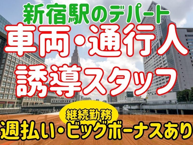 仕事内容 駐車場入り口で歩行者のご案内や 車の誘導などをお願いします。 「少しお待ちください!」 「もう少し前でお待ちください!」 などご案内メインのシンプルワーク◎ 勤務地は新宿駅にあるデパートでの勤務! レギュラーワークで安定勤務◎ 未経験大歓迎! 先輩スタッフがフォローしますので安心してご応募ください。 <お仕事詳細> 新宿駅のデパート駐車場で、 車両誘導や歩行者が安全に 通行できるように案内などをします。 シンプルワークでスグに慣れていただけます。 ※詳細は面談の時にお伝えします。 ★シフトはアプリでラクラク申請♪ 月払い・週払いなら 給料は振込で来社不要! ★1日8時間で日給1万400円! 交通費は別途支給アリ◎ 日払い・週払いOKで急な出費にも対応可能! ★ビッグボーナス合計15万円支給あり! ◎44勤務終了後、現金一括10万円支給! ※研修初日の入社日から3か月以内/新任研修はカウントされません。 ◎88勤務終了後(期限なし)5万円支給 ※達成日の締め日の給与処理に合わせて振込 ★最短4ヵ月で達成可能! *未経験大歓迎!給与も出る丁寧な研修があり初心者の方でも安心して始められます! *学生さん、主婦・主夫パートさん、フリーターさんみんな活躍中! *20代・30代・40代・50代の幅広い世代の男女スタッフが活躍中! *副業・Wワーカー・かけもちの方にもピッタリ!