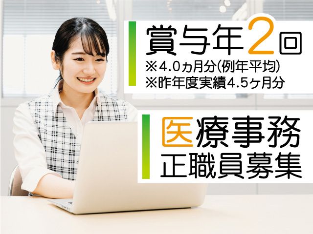 医療事務正職員募集! 医療事務経験が活かせる! 昇給・賞与年2回あり!
