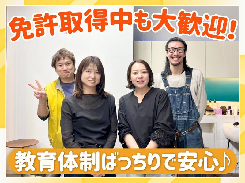 求めている人材 【必須】美容師免許 ※免許取得予定の方もOK! ※通信教育を受けている方、専門学校に通っている方もOK! 「美容師免許を取得したばかり」 「ブランクがあって不安」 という方もご応募大歓迎です! ★未経験者歓迎 ★経験者歓迎 ★ブランク歓迎 ★主夫・主婦歓迎 ★フリーター歓迎 ★ブランクOK <こんな方にピッタリ!> ・地域密着の美容室で働きたい方 ・スキルUPを目指していきたい方 ・家族との時間も大切にしながら働きたい方