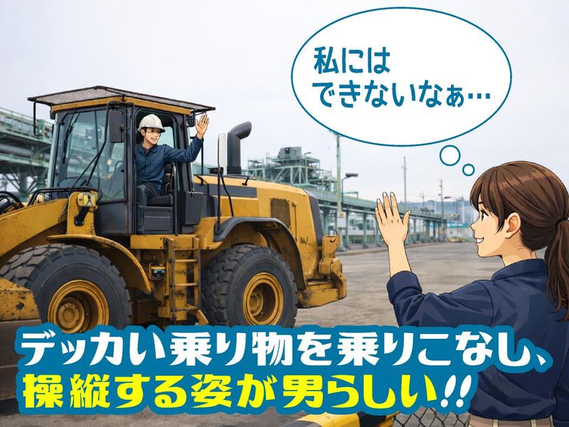 仕事内容 ★- 仕事に打ち込む姿が めちゃくちゃカッコイイ!! -★ 私の“推し”は、港湾荷役のメンバー。 いつもはムードメーカーの山田さん。 でも、仕事が始まると空気が変わる。 巨大な重機を操る姿。 (私には絶対無理!) 仲間と声を掛け合い、 一瞬も気を抜かない緊張感。 (チームワークが素敵!) 汗だくでやり切ったあと、 ふぅ~と笑うあの感じ。 (汗もしたたるいい男w) …ずるいです。 ギャップが強すぎます。 ★- え?スマホが使えなくなる!? -★ カッコいいだけじゃないんです。 もしこの仕事が止まったら、 工場も、電気も、社会も止まる。 その理由は「銅」。 例えばスマホの中には、 電気を流すための部品や配線があり、 そこに銅が使われています。 その銅は、世界中から 巨大な船で運ばれてきます。 そしてその銅を、 運ぶ・積む・降ろすのが桑原運輸。 一見シンプルな仕事だけど、 この流れが止まれば、 日本の産業そのものが止まってしまう。 そんな役割を、日々担っています。 ★- 言葉より、背中で伝わる。 -★ 以前、山田さんに聞いたことがあります。 「毎日、どんな気持ちで仕事してるんですか?」 「運んでるのは、ただの荷物じゃない。 日本の産業を支えてる気持ちでやってるよ」 さらっと言うけど、重い一言。 あの真剣な表情の理由が、 少しわかった気がしました。 ★- 頑張りが、そのまま給料になる。 資格取得=収入アップ。 -★ この仕事は、決して派手じゃない。 でも、なくなったら困るどころじゃない。 私たちの生活そのものが止まってしまう。 そんな場所で、 チームで本気で仕事に向き合っている人たち。 正直に言うと、 最初は「凄いな~」と思うだけでした。 でも今は違います。 「カッコいい」と思っています。 生活を支える側で働くこと。 仲間とやり切ること。 それをこんな近くで見ていると、 ちょっと誇らしい気持ちになります。 ニッチな仕事なので、ほとんどが 未経験スタート。OJT研修も完備。 あなたが一人前になるまで、 先輩が責任を持って育ててくれます! ✅資格取得支援(全額会社負担) ・フォークリフト ・車両系建設機械 ・酸欠作業主任者 ・揚貨装置運転士 ・船内荷役作業主任者 ◎資格が増えるほど 仕事の幅が広がり、 給与アップにもつながります。