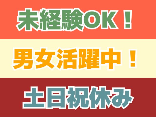 仕事内容 未経験でもすぐに覚えられるカンタンな組立などの軽作業。 特別な知識やスキルは必要なし! 未経験から大手企業で働けるチャンスです。 ▼おススメポイント▼ 〇未経験者大歓迎 〇土日祝休み 〇大手企業で長期安定 〇人気の日勤固定 〇男女活躍中 〇車・バイク・自転車通勤OK 〇空調完備で一年中快適 〇交通費全額支給 〇社員食堂完備 〇給与仮払いあり 【こんな経験がある方は歓迎】 〇製造・正社員 〇製造業・正社員 〇工場内作業・製造スタッフ 〇倉庫内作業 〇軽作業 未経験者も大歓迎! 工場ワークの経験がある方も歓迎します! 【組立・検品 軽作業スタッフの仕事内容】 大手工場内で身近な住宅製品の棚や引出しの組立、 集めたり検品したりの作業をお任せします。 すぐに覚えられるカンタン軽作業なので、工場・製造未経験の方も安心して始められます。 先輩のフォローがあるので安心して始められます。 【組立・検品 軽作業スタッフの働き方について】 日勤固定で働きやすい職場! 土日祝休みなので、主婦さんやフリーターさんなど仕事と家庭の両立も可能です。 土日祝休みに加えて大型連休もありプライベートもしっかり確保できます。 30代・40代・40代の中高年世代も活躍中です。 <お仕事初日から社会保険加入可能!> ▼手厚い福利厚生であなたを全力サポート▼ 加入要件を満たす場合は、お仕事初日から加入できます。 長期で安心して働ける環境をご用意しています。 <電話からの応募も大歓迎です> 〇WEB面談・出張面談も実施中! 〇職場見学実施中! 〇入社日相談可能! お気軽にお問い合わせください。 株式会社トーコー 関東支店 TEL:0120-530-105(採用係)