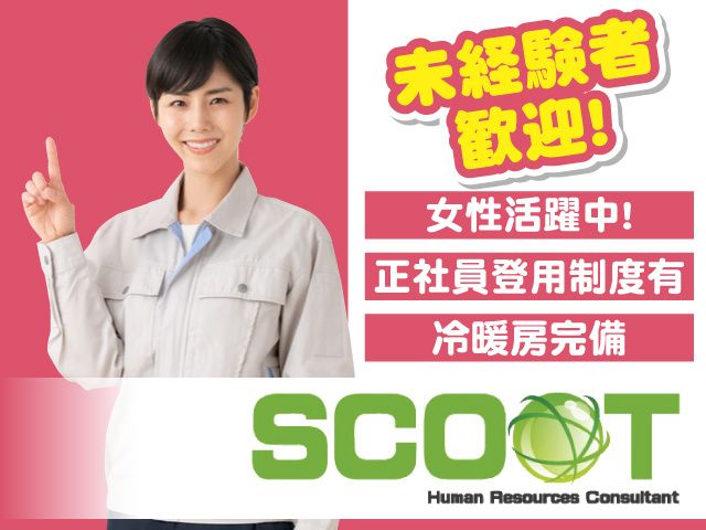 職種補足 【環境の良い安定企業で資材管理及び出荷/未経験大歓迎】オフィス内メインですが出荷・資材管理を行います。 雇用形態 派遣社員 試用期間 なし 学歴 不問 こんな方歓迎 真面目に勤務出来る方 備考 ━━ SCOOTは人材紹介の業界において お客様の意見を尊重し信頼を大切にしております。 皆様へのスピーディな対応を重視しております。 いつまでも返事が無いなどという事はありません。 例えば、応募した返事を待たされている場合、 何らかの状況を適宜お伝えしております。 個々の希望を本音で伝えて頂き、 誠意でお応えする事を重要視しております。 納得できるまでご確認下さい。 私共はその様な気持ちを大事にしております。 ホームページ https://www.scoot-hrc.com/ 採用ホームページ https://entori.jp/scoot-recruit ━━ ホームページ https://www.scoot-hrc.com/ 採用サイト https://entori.jp/scoot-recruit 勤務エリア(県) 群馬県 業種 製造 社会保険 健康保険あり,厚生年金あり,雇用保険あり,労災保険あり 喫煙環境 敷地内禁煙(喫煙所あり) 受付先名 株式会社SCOOT <スクート> 〒376-0031 群馬県桐生市本町6丁目27-1 プライマリービル4F TEL:0277-46-6544 TEL:090-4598-3966 受付時間:08:00〜19:00 WEBでのご応募は24時間受付ております!