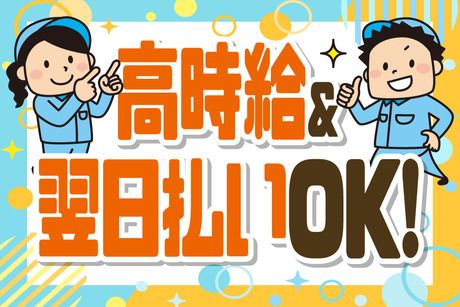 【保険制度】 雇用保険、労災保険、健康保険、厚生年金 待遇・福利厚生 【福利厚生】 ・交通費規定支給(2万円/月) ・仕出し弁当あり(1食400円) ・制服貸与 ・休憩室、個人ロッカー有 ・駐車場有 ・車、バイク、自転車通勤ok ・週払い/日払いOK(規定有) [申請の流れ] 申請 →申請日の「前日」までの「稼働分」の給与を、申請日の翌日に支給(詳細は面接時にて)