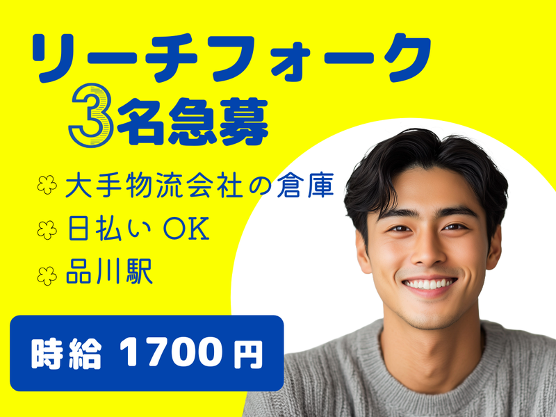仕事内容 +:..。o○☆・:,。+:..。o○☆+:・:,。 <リーチフォークスタッフ募集✨> 時給1700円&冷暖房完備の快適倉庫! 土日祝休み×残業高時給でしっかり稼げる◎ +:..。o○☆・:,。+:..。o○☆+:・:,。 〈仕事内容〉 食品・日用品・家具などを扱う大手倉庫にて、リーチフォークリフトを使用した入出庫作業を中心に、ピッキングや簡単な在庫管理もお願いします。 <✅主な業務内容✅> ✅ リーチフォーク作業(6割) ・商品の棚入れ、出荷前の運搬作業 ✅ ピッキング・仕分け作業(4割) ・ハンディ端末を使って商品を集める ✅ 手作業による在庫整理・チェックなど → フォークリフト経験を活かしながら、軽作業も交えてバランスよく働けます! 〈ここがポイント〉 ⭐【高時給1700円】残業時は時給2125円! ⭐【冷暖房完備】食品フロアで快適作業✨ ⭐【土日祝休み】プライベートとの両立も◎ ⭐【日払いOK(規定あり)】急な出費にも安心! ⭐【職場設備充実】冷蔵庫・電子レンジ・給湯器完備 ⭐【ユニフォーム&ヘルメット貸与】ファンベストもあり快適さ◎ ⭐【自由なスタイルOK】髪色・髪型も自由♪ ⭐【バイク通勤OK】近くにコンビニありで便利 〈職場環境〉 ✅ 20~40代の幅広い年代が活躍中 ✅ チームワークを大切にする落ち着いた雰囲気 ✅ 対人ストレスの少ない作業内容で集中できる環境 〈こんな方におすすめ〉 ✅ フォークリフト資格・経験を活かしたい方 ✅ モクモク・コツコツと集中して働きたい方 ✅ 高時給&安定勤務を希望している方 ✅ 清潔で快適な作業環境を重視したい方 ✅ 土日祝休みで働きたい方 ご興味のある方は、ぜひ職場見学からでもOK! まずはお気軽にお問い合わせください✨ あなたのご応募をお待ちしております!