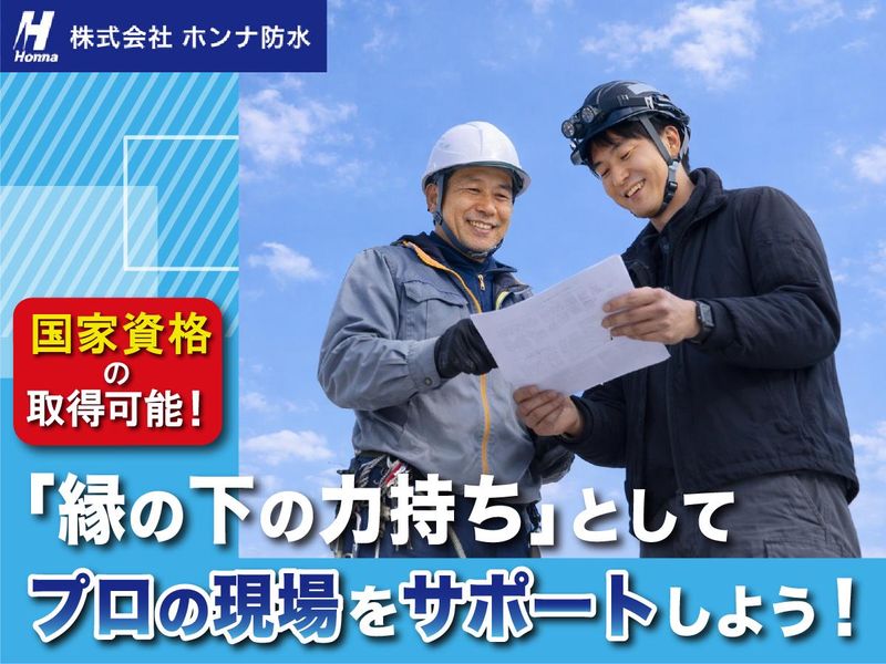 仕事内容 今回募集する工事サポート職は、 自社や協力会社の職人さんと一緒にビルやマンションなどの現場へ行き、 工事資材の準備や片づけ、進行のチェックなどをするお仕事。 職人・協力業者・お客様をつなぐ重要なポジションです。 未経験からじっくり育てる体制が整っているので、現場のお仕事や業界が初めてでも大丈夫! 資格取得も会社でサポート!イチから国家資格を目指すことも可能です! ◆ POINT ◆  ̄ ̄ ̄ ̄ ̄ ̄ ̄ ✔ 未経験歓迎!丁寧な育成体制あり ✔ 資格取得サポート制度あり ✔ 月給27万円~ ✔ 現場状況により直行直帰OK! ✔ 若手~ベテランまで幅広い年代が活躍中! ◆ 仕事内容 ◆  ̄ ̄ ̄ ̄ ̄ ̄ ̄ ̄ ビルや住宅の屋上・バルコニー・プールなどの防水工事の現場で、 自社職人や協力業者さんと連携しながら 工事がスムーズに進むようサポートする仕事です。 具体的には… ・現場の調査補助 ・工事資材の準備や手配 ・職人・協力業者の段取り調整 ・工事の進捗確認 ・書類作成のサポート など ★現場は近畿一円(現場によっては直行直帰もあり) ★業種未経験の方には道具の名前から丁寧にお教えします! ★将来的に、希望があれば営業にステップアップが可能です。 【株式会社ホンナ防水について】  ̄ ̄ ̄ ̄ ̄ ̄ ̄ ̄ ̄ ̄ ̄ ̄ ̄ ̄ ̄ 一般的な防水工事から国会議事堂にも採用される 「アスファルト防水」まで! あらゆる防水施工を行うプロフェッショナル集団です。 ・アスファルト防水 ・塗膜防水 ・シート防水 ・注入工事 ・屋根工事 ・土木防水 ・シーリング(シール)工事 「アスファルト防水」は、国会議事堂などの公共施設にも採用されてきた工法で、 施工できる企業が限られている専門工法のため、 公共施設などの防水工事も多数手がけており、安定した成長を続けています。