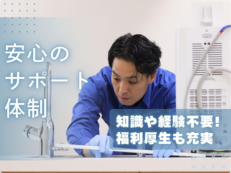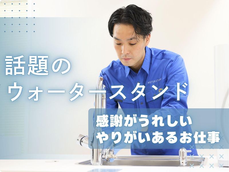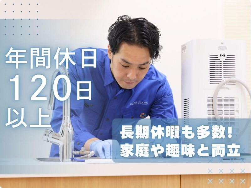 仕事内容 / 未経験でも大丈夫! 心機一転、始めてみませんか? 初めての転職も応援します◎ \ . 業績好調の "ウォータースタンド" 男性スタッフが多数活躍している職場です! 30代~50代の方も活躍中! まずはお気軽にご応募ください! . ================= この求人のポイント♪ ================= ◆経験・スキル不問! <普通免許があればOK>です☆ ◆年間休日<120日以上!> ◆未経験も安心の<サポート体制完備♪> ◆<スーパーフレックス制>で 理想の働き方が実現♪ ◆ノルマはありません!! . . ================= 仕事内容はこちら! ================= ✅設置・交換・撤去・修理  ̄ ̄ ̄ ̄ ̄ ̄ ̄ ̄ ̄ ̄ ̄ ̄ ̄ ご契約されたお客様先にて ウォータースタンドの設置を行います! 設置・修理・お手入れ方法の ご説明などは 入社後にしっかり研修を行うので どなたもご安心くださいね♪ . ✅サーバーメンテナンス  ̄ ̄ ̄ ̄ ̄ ̄ ̄ ̄ ̄ ̄ ̄ ̄ フィルター交換や作動チェックなど 既存のお客様先にて メンテナンスを行います! 1件40分ほどの時間が掛かるので お客様とのお話しを楽しみながら 作業をお願いします♪ お客様は法人から個人まで幅広く、 法人の場合は自治体と協定を結んだり "給水スポット" として さまざまな場所に設置されることも多いため、 「別の店舗でも利用したい!」 「友達の家でも利用したいと言っている」とご紹介をいただくケースもございます。 設置~アフターフォローまで一貫して担当できるので お客様との信頼関係もバッチリ★ . 上記業務をお任せします! 「ノルマ」は無いので ご安心くださいね♪ もちろん、 社用車や制服 タブレットや携帯電話などの 業務に必要なものは貸与! . . ================= 安心の<サポート体制!> ================= ◆入社後、まずは座学研修で 商品知識や訪問マナーなどを 基礎から丁寧にレクチャーします! ◆座学研修後は、OJT研修で 先輩に同行し実際の現場を 学んでいただきます! ◆独り立ち後も 階層別の勉強会や研修を実施♪ . 更に・・ 週に一度、 上長との面談を設けています。 ◎実務上のトラブル解決方法 ◎アドバイス・フォロー などなど・・ 些細なことから 相談できる環境が整っています♪ 安心してご応募ください☆ . . ============== <直行直帰>可能! ============== ご自宅から直接 お客様先へ訪問をし、 そのまま直帰OK! 勤務時間や休日は 自分で決められるので 週休3日の働き方も◎ フレックスタイム制ならではの 働き方が実現可能です♪ あなたが「働きやすい!」と思える ワークライフを見つけていきましょう! . . ============== 1日のスケジュール例 ============== 9時 自宅から出発! 近くのマンションで2件設置 12時 ランチタイム♪ 13時 新規のお客様先へ移動 14時 設置作業で1件訪問 15時半 機種変更希望のお客様先へ訪問 商品の交換と使い方の説明もします 17時 自宅へ直帰♪お疲れ様でした! . あるスタッフの1日の例ですが 上記のような働き方が可能です♪ . . =============== ウォータースタンドについて =============== 当社は、 「 2030年までに日本の 使い捨てプラスチックボトルを 30億本減らします。 」 というミッションを掲げ マイボトルを携帯する 新しい文化を創り、 気候変動とプラスチックによる 環境問題改善に取り組んでいます! 一般のお客様だけでなく 官公庁や公共施設、 企業などのお客様からも 幅広く支持いただいております♪ このような信頼のもと 事業は右肩上がりで成長中! . ☆SNSでも話題のウォータースタンド☆  ̄ ̄ ̄ ̄ ̄ ̄ ̄ ̄ ̄ ̄ ̄ ̄ ̄ ̄ ̄ ̄ ̄ ̄ . // あなたのご応募を お待ちしております! \\