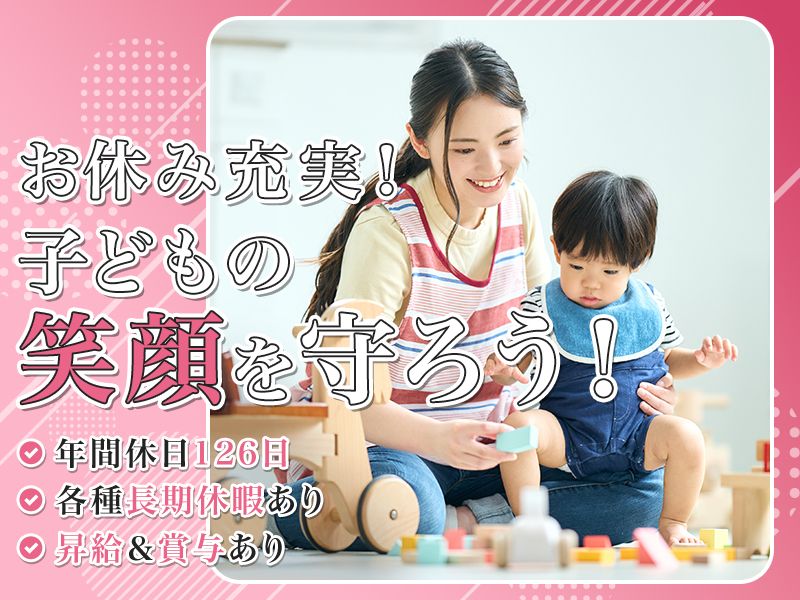仕事内容 <採用残りわずか!> …求人のPOINT………………………… ✅年間休日126日! ✅有給取得率100%! ✅月収21万円~+各種手当! ✅賞与は計3ヶ月分を年2回支給! …………………………………………… 【お任せする仕事内容】 0~5歳児までの保育業務全般を お任せします! 複数クラス制となっており、 最初は補助業務からお願いしますので、 実務未経験の方もご安心ください♪ >>具体的には? ・散歩の付き添い、園内での遊びの 企画・実施 ・昼寝時の寝かしつけ、おむつ交換や 着替えなどの生活習慣 ・発達段階に合わせた個別的な関わり <クラス編成> 0歳クラス 子ども9名/先生3名 1~3歳クラス 子ども18名/先生5~6名 3~5歳クラス 子ども15名/先生2名