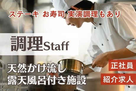 仕事内容 入居者様+職員の食事の提供をお願いします。 平均90食/毎を4~5名で調理しています。 ~天然かけ流し~露天風呂付 施設 ■ルルドの泉 「我人生 今が一番」と思って生活してほしいという想いから、様々な取り組みを行っている、介護施設です。 協力医療機関と連携で安心の生活環境をご提供・「食」を大切に・天然温泉のある暮らし・楽しく過ごせる時間を提供しています。 ~実演調理もあり~大好評のイベント食 月1で中庭バーベキューや、握りたてお寿司、ステーキの実演調理などをして入居者様に喜んでいただけるように工夫しています。 また、普段のお食事も家庭の食卓のように出来立てのご飯を食べていただきたいという思いから、できる限りその場で仕上げるようにしています。 お寿司は、握りたてを食べていただきということで、管理栄養士は数ヶ月間お寿司教室へ通い、社長は練習用のシャリを持ち歩き、家でも握る練習をしました! 「食」の時間を幸せに過ごしていただきたい ★第6回ソフティアを使ったレシピ大賞 大賞 「北海道産ビーフシチュー」 ★第3回嚥下食メニューコンテスト 準グランプリ 「サーモンのミキュイ 北海道フレンチ仕立て」 ★第2回嚥下食メニューコンテスト 準グランプリ 「ドゥーブルフロマージュ」 加齢により飲み込む機能が低下しても、人生の楽しみである「食」の時間を幸せに過ごしていただきたいという想いから、ミキサーにかけて固めない嚥下食の研究をしています。 前割烹料理の職人と和食の匠と称される調理師が在住。 どんな方でも毎日の食事を楽しんでもらうために、オリジナルメニューの考案にも力を入れています。 介護施設にしてレストランのような業務もあり、「楽しむ・喜ぶ」がより身近に感じられます。 ~嚥下食とは~ 飲み込みや咀嚼などの嚥下機能が低下している人にとって、飲み込みやすいように調整された食事です。 仕事内容について 入居者さん+職員合わせて、平均90食の食事をつくるお仕事です。 食材の切り込み~加熱~盛付けなど、調理全般をお願いします。 イベントや行事ごとに特別メニューの用意もありますが、通常メニューではクックチルを導入して効率的に調理が行えます。 ~クックチルとは~ 調理した食品を急速冷却して低温保存し、提供する際に再加熱する調理方式です。 食品の品質や栄養価を保ちながら、計画的な食事提供ができるメリットがあります!