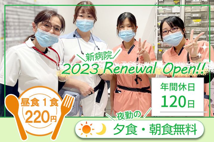 昼食は1食220円☆◆祝い金あり★<私生活も充実!>希望休が取得しやすい!年間休日120日☆2023年リニューアルの綺麗な病院◇残業ほぼなし×有給・連休OK◎【姫路市・御着駅・病院・病棟ナース・正職員】