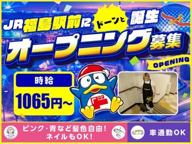 アピールメッセージ 2026年6月OPEN(予定)!MEGAドンキが福島駅前に誕生!年齢不問で元気に稼げる清掃◎ 新店舗をピカピカに保つ清掃スタッフを募集◎この街を盛り上げる一員として、いつまでも元気に働きませんか?