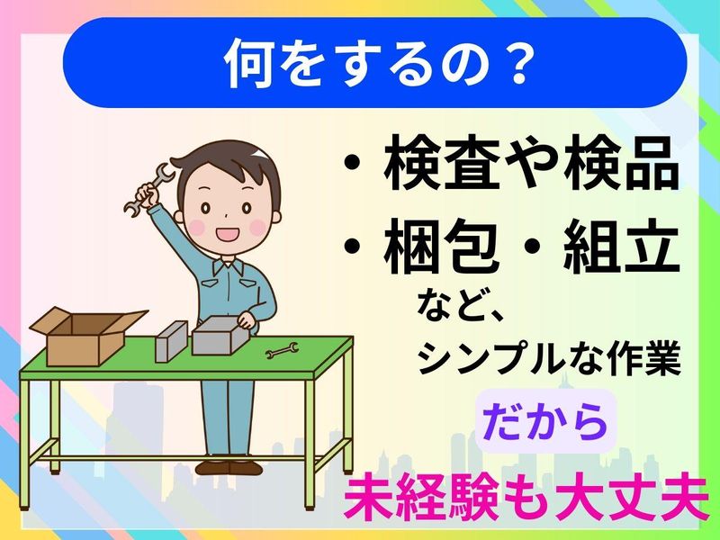 仕事内容 \高時給❗/\厚待遇❗/\若手活躍中/ ⭐月収28万円以上可能の稼げるお仕事❗ ⭐経験問わず誰でも高時給1600円です☘ ⭐座り仕事多めで無理なく働ける♪ ⭐【大手で安心】医療用機器の分野で 世界的にも高いシェアを誇る会社です✨ ⏩医療機器の部品の組立・検品 ┌─┐┌─┐┌─┐┌─┐┌─★ │P││O││I││N││T│ ★─┘└─┘└─┘└─┘└─┘ ✅社内研修や教育体制が充実 経験がない方も安心してスタート ✅土日祝休み&大型連休あり✨ ✅食堂や購買施設もあり働きやすい♪ ✅直接雇用制度もあります✨ ┏━━━━━┓ ┃お仕事内容┃ ┗━V━━━┛ ⏩完成した商品の検査・梱包作業 ⏩ドライバーなど工具を使って 部品を組み立てる ⏩日報などの簡単なPC入力 【ゆくゆくは…】 ◆顕微鏡を見ながらはんだ付けなど (はんだ付け…金属同士をくっつける) ⭐プラモデル製作やネイルなど 細かい作業が得意な方や 好きな方にピッタリのお仕事♪ ⭐マニュアルと丁寧な研修があるので 未経験でもやる気があれば大丈夫! 当社スタッフも就業中! 安心して働ける環境が整っています◎ 将来的に直接雇用を目指す働き方も可能 ╭━━━━━━━━━━━━━╮ ✨他にもメリットたくさん!✨ ╰━━━━━━v━━━━━━╯ ☕ワークライフバランス◎✨ 土日祝休み+大型連休あり♪ メリハリつけた働き方が可能です✊ ☕職場環境充実❗ 購買施設・休憩室・更衣室・ロッカー完備 社員食堂でゆっくりランチも楽しめます♪ ﹌﹌﹌﹌﹌﹌﹌﹌﹌﹌﹌﹌﹌﹌﹌﹌﹌﹌﹌ ✨パーソルフィールドスタッフの強み✨ ﹌﹌﹌﹌﹌﹌﹌﹌﹌﹌﹌﹌﹌﹌﹌﹌﹌﹌﹌ ⏩長期安心・安定の大手パーソルグループ で働きませんか? ⏩先輩スタッフや専任スタッフのサポート 体制も手厚いので安心スタートが可能♪ ⏩スタッフの定着率も良く 待遇も充実しているので働きやすさ抜群✨ //////////////////////////////////////// 来社なし!ご自宅でラクラク行える オンライン登録&電話面談実施中❗ ╭───────・⭐・・─╮ お電話での応募も大歓迎です❗ TEL▶▶ 0120-507-073 ╰─・・⭐・───────╯ ////////////////////////////////////////