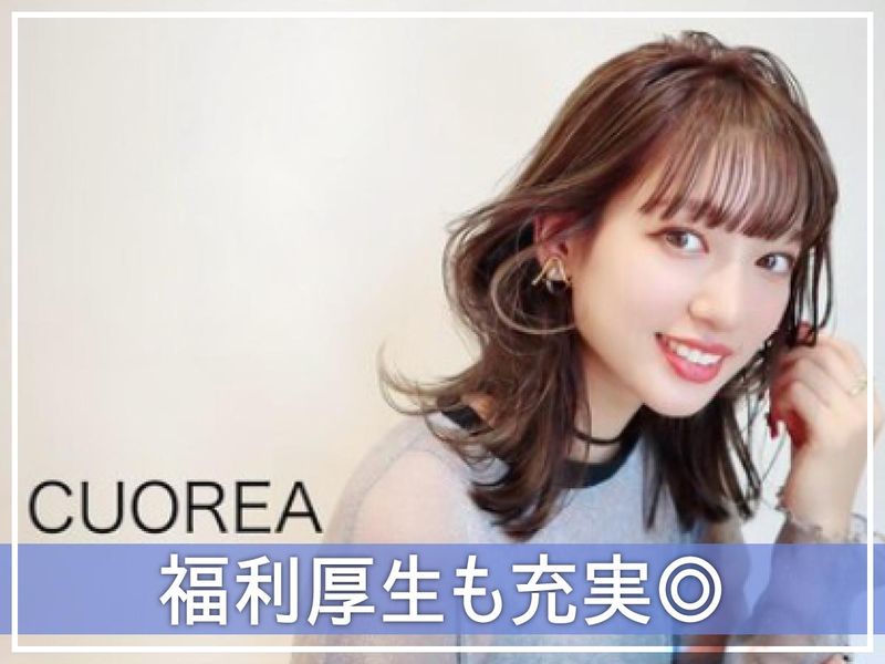 仕事内容 ●求人のおすすめポイント● ✅パソコン操作ができる方歓迎 ✅ 週4日~OK!無理なく働けます! ✅ 未経験OK!20代女性が活躍中! ✅ 土日ともに勤務すると時給50円UP! ✅ オシャレを楽しめる自由な職場! ✅ 髪型・髪色自由、ネイル・ピアスOK♪ ✅ 東加古川駅チカの立地! ============ \美容室「CUOREA」でのフロント受付スタッフ募集!/ トレンドに敏感な方、接客が好きな方にピッタリの職場です♪ 【お仕事内容】 ✅カンタンな売上集計 ✅予約や来店したお客様の対応 ✅店内備品の簡単な整理整頓や備品発注 少しずつ業務を覚えていただき、 できることを増やしていただきます◎ <未経験ok!> 未経験の方もご安心下さい◎ 先輩がしっかりサポートしますので、 初めての方でも心配いりません♪ <残業無しで働いて頂けます!> 残業はありません! プライベートと両立して勤務して頂けます◎ <駅チカでアクセス便利♪> 東加古川駅北側スグの好立地! <CUOREAってどんなお店??> お客様のなりたいを叶えるをモットーに、 再現性の高いSNS映えスタイルを提供しています! 美容やオシャレに興味がある方大歓迎!! JR東加古川駅スグ! 20~30代女性活躍中♪