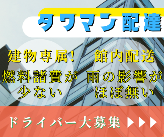 仕事内容 担当タワーマンション内の日用品配送業務です。 10月中旬から始業開始! \売上見込み平均45万円以上目指せる/ 弊社ドライバーより3日〜1週間の研修有り <具体的な仕事内容> ●センターにて荷物の積込→担当マンションへ ●マンション内配送専用場所へ駐車、台車を使用して配送開始! └専用端末・アプリを利用 ●2便目以降は近くでピストン、営業所に戻る必要無し! ●その日の配送が終わり次第業務終了! 【おすすめポイント】 \女性でも働きやすい好条件/ 1,指定のマンションなので場所の確認や道を覚える必要無し! 2,車両の走行距離がかからないので経費削減♪ 3,マンション内のエレベーターを使うので身体を酷使しない 4,雨に濡れる心配が無い 5,宅配ボックスの利用可、置き配指定の荷物もあるので配達数が稼げる! 【一日の流れ】 <イメージ> 7:30 着車〜積み込み 8:30 配送開始 12:30 休憩 13:30 2便受取、配達 16:30 3便受取、配達 20:30 帰庫、業務終了(目安) ※配送量によって早く終わる日もあります 【福利厚生・待遇】 ★業界最速級! 月末締め、翌25日支払 ★前払い制度(条件有) ★弊社独自の手当制度 ★半年勤務手当対象案件(10万円支給) 1年、5年、10年勤務手当あり(合計18万円支給) ★ドライバー紹介制度(10万円支給) ★自家用車がない方も安心〜車両リースご案内♪ (最初の2か月はリース代無料です♪) ★営業(黒)ナンバー取得代行 ★貨物軽自動車安全管理者講習の費用負担します! ★webでの講習受講の方法、説明いたします! ★社会保険労務士在籍、相談料無料!