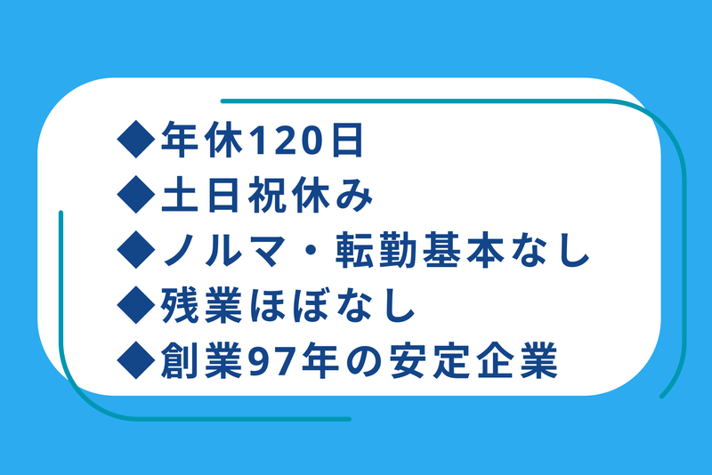 【年休120日】残業月4.3hで年収410万超!転勤なし