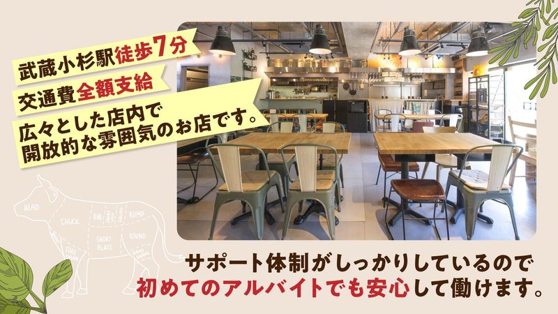 仕事内容 お肉料理と豊富なワインが自慢のバルで、 一緒に働く新しい仲間を大募集! ✨このお仕事のポイント✨ ✅未経験歓迎!丁寧なサポートで安心スタート!! ✅絶品まかない付き! ✅「平日のみ」「土日のみ」もOK! ✅2週毎のシフト提出でプライベートも充実◎ ✅髪型・髪色・ネイル・ピアス・ヒゲどれも自由! ✅面接時、履歴書不要! ┏ ───────────── ┓ 少しでも気になった方は 是非お気軽に応募ボタンを! お電話からの応募は 044-322-8889まで! ┗ ───────────── ┛ ≡≡≡≡≡≡≡≡≡≡≡≡≡≡≡≡≡≡≡≡≡≡≡≡≡≡≡≡≡≡≡≡≡≡ ✨主な仕事内容✨ ✅お客様のご案内 ✅オーダー取り ✅料理やドリンクの提供 ✅レジ業務 ✅テーブルの片付け ≡≡≡≡≡≡≡≡≡≡≡≡≡≡≡≡≡≡≡≡≡≡≡≡≡≡≡≡≡≡≡≡≡≡ ✨未経験スタートも安心です✨ 「飲食店で働いたことがない」「接客経験がない」という方も大丈夫! 簡単な作業からスタートし、 先輩スタッフがイチから丁寧に教えますのでご安心ください。 分からないことは何でもすぐに聞ける、優しいスタッフばかりです! 最初は元気に「いらっしゃいませ!」が言えたらOK! ≡≡≡≡≡≡≡≡≡≡≡≡≡≡≡≡≡≡≡≡≡≡≡≡≡≡≡≡≡≡≡≡≡≡ ✨MEAT BAR GIRASOLをご紹介✨ MEAT BAR GIRASOL(ミートバル ヒラソル)は、 武蔵小杉にあるアットホームな雰囲気の肉バルです。 店名の「ヒラソル」はスペイン語で「ひまわり」を意味し、 その名の通り明るく居心地の良い空間が広がっています。 A5ランクの黒毛和牛をはじめ、 厳選された肉料理をリーズナブルに楽しめます。 ペット同伴可能なテラス席もあり、 家族や友人との食事はもちろん、 女子会や記念日など様々なシーンで利用できます。 ≡≡≡≡≡≡≡≡≡≡≡≡≡≡≡≡≡≡≡≡≡≡≡≡≡≡≡≡≡≡≡≡≡≡