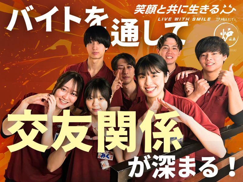 仕事内容 / 呼炉凪来 ~コロナギライ~ 🔥春の採用”バンバン祭り🔥 新大学1年生集まれ!!!😍 \ ✅呼炉凪来 ~コロナギライ~姫路店✅  ̄ ̄ ̄ ̄ ̄ ̄ ̄ ̄ ̄ ̄ ̄ ̄ ̄ ̄ ̄ ̄ ̄ ̄ 全国各地で人気沸騰中の居酒屋で 楽しく働きたいそこのあなた! 今すぐ応募するべき!! 最短で明日には採用されちゃうかも!? 現在・・”学生”さん! ✋せっかくならお洒落なお店で働きたい ✋同世代が沢山いる職場が良い ✋楽しい雰囲気の中で働きたい ✋4年間働けるようなバ先を探してる ⇒そんなあなたにオススメの職場☆ >>>>>>>>>>>>>>>>>>> ◎お仕事内容◎  ̄ ̄ ̄ ̄ ̄ ̄ ̄ まずは笑顔で接客! 愛嬌が良ければOK 👍 ・お席のご案内 ・オーダー取り ・フードやドリンクのご提供 ・片付け ・店内清掃 色々なお仕事がありますが、 少しずつ一緒に覚えていきましょう☆ 誰でも最初はみんな初心者!! <アルバイトデビューの方でも◎> バイトデビューしている先輩が 多く活躍しているので、フォローや 教え方にも慣れているので安心です♪ >>>>>>>>>>>>>>>>>>>> 【呼炉凪来 姫路店のいいところ⭐ 】 1、おしゃれ自由  ̄ ̄ ̄ ̄ ̄ ̄ ̄ ̄ ⇒髪色・ピアスが自由なので おしゃれに働くことができます! 制服もシンプルなので どんな髪色・ファッションでも◎ 2、絶品賄いが無料  ̄ ̄ ̄ ̄ ̄ ̄ ̄ ̄ ̄ ⇒頑張って働いた後は お腹が空きますよね・・笑 呼炉凪来では! 店長特製絶品賄いをご用意♪ スタッフに大人気なんだとか・・ 3、スタッフ同士が仲が良すぎる。  ̄ ̄ ̄ ̄ ̄ ̄ ̄ ̄ ̄ ̄ ̄ ̄ ̄ ̄ ̄ ⇒勤務終わりは全員で乾杯が日課✋ 休みの日にも遊びに行ってます♪ メンバーの誕生日には全員でお祝い✨ 人生を共に楽しむ仲間として 大大大歓迎します!! >>>>>>>>>>>>>>>>>>>>>> ✨人柄の良さが一番のウリ♪✨  ̄ ̄ ̄ ̄ ̄ ̄ ̄ ̄ ̄ ̄ ̄ ̄ ̄ ̄ ̄ 店長さん始め、スタッフの皆さんが 笑顔で気さくに取材に応じて下さりました! 明るく活気ある雰囲気にこちらも元気を もらっちゃいました♪ お客様とのコミュニケーションが好きな方 アルバイト先で友達が欲しい方 最高の思い出や経験が できること間違いなし!!! ⏩社員とアルバイトの方のエピソード⏩  ̄ ̄ ̄ ̄ ̄ ̄ ̄ ̄ ̄ ̄ ̄ ̄ ̄ ̄ ̄ ̄ ̄ ̄ ̄ 大学生のAさん  ̄ ̄ ̄ ̄ ̄ ̄ ̄ 「正直マジで楽しい。笑笑」 「店長が作ってくれる賄いが最高!」 「辛いことがあった時に相談に乗ってくれた」 店長さん  ̄ ̄ ̄ ̄ ̄ 「スタッフとご飯や飲みに行ったり 弾丸で旅行に行ったり・・笑 年齢問わず仲良いです!」 人間関係の不安も一切なし! 何でも話せる職場環境ですよ~! >>>>>>>>>>>>>>>>>>>>>> 【気になる方は今すぐ応募♪】 ⇒激レア募集!!今だけのチャンス!? 話題沸騰中&人気店で働く 大チャンス!!