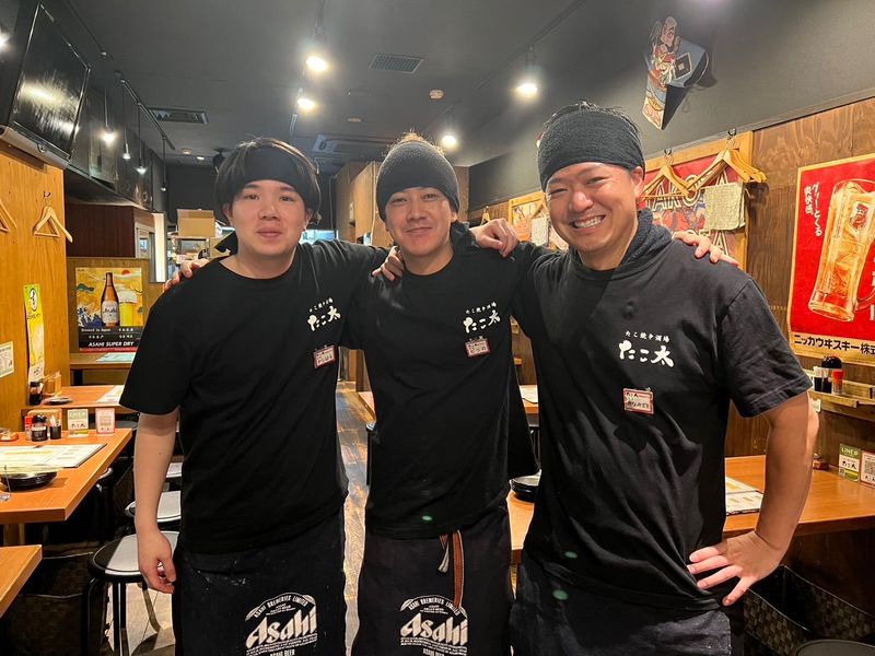 仕事内容 ★若手応援★安心して働ける環境&待遇が充実! 今後の新規出店を見据え、正社員を増員募集◎ 土日祝休み!残業少なめでプライベートも充実♪ < 仕事内容 > ■入社後まずは、ホール・キッチン業務から慣れていただきます! 「人気のメニューは?」「どんなお客様が多い?」など、 働きながらお店の特徴を吸収して下さいね! ■慣れてきたら… ・仕入れ、発注 ・店舗スケジュールの管理、企画 ・スタッフのシフト管理、スタッフ教育 ・売上管理 など、店舗運営の業務全般もお任せしていきます。 ※営業時間は17時からで、それまでは仕込みや開店準備を行います。 ※ランチタイムは、社内のお弁当屋さんが曲がりで営業しています。 【 飲食業未経験の方も大歓迎! 】 ホール・キッチンの経験がない方も積極採用中◎ 食材の仕込みや美味しいたこ焼きの焼き方、 接客方法などイチから丁寧にお教えしていきます。 「未経験から飲食業界で活躍したい!」 「ゆくゆくは店長として自分のお店を持ちたい!」 「飲食店でのアルバイト経験を活かしたい!」 「自分のアイデアを活かしてお店を盛り上げたい!」 そんな方にはピッタリの環境です♪ < チャレンジ精神を全力応援! > 社歴・年齢に関わらず、”やりたいこと”があれば叶う環境です。 例えば、「店長をやりたい!」と声を上げれば最短ルートで昇格できたり、 新商品の開発や価格の設定などのメニューは店長判断でOK! (上司に確認は取るのですが、ほぼ通ります!) < たこ焼き酒場たこ太について > 朝仕入れる新鮮な生だこを包み込み、 外はカリッ、中はとろっとしたたこ焼きが自慢♪ 会社員や常連のお客様で、連日満席の大人気店です! 店名に恥じない当店のたこ焼きは、 厳選素材を使ったこだわりの一品でバリエーション豊富。 スタンダードなソースや醤油のほか、塩やおろしポン酢、 ガーリックなど様々な味をご用意しております。 店舗ごとに、本日のおすすめもご用意! お客様にその日の気分によってお選びいただいています♪