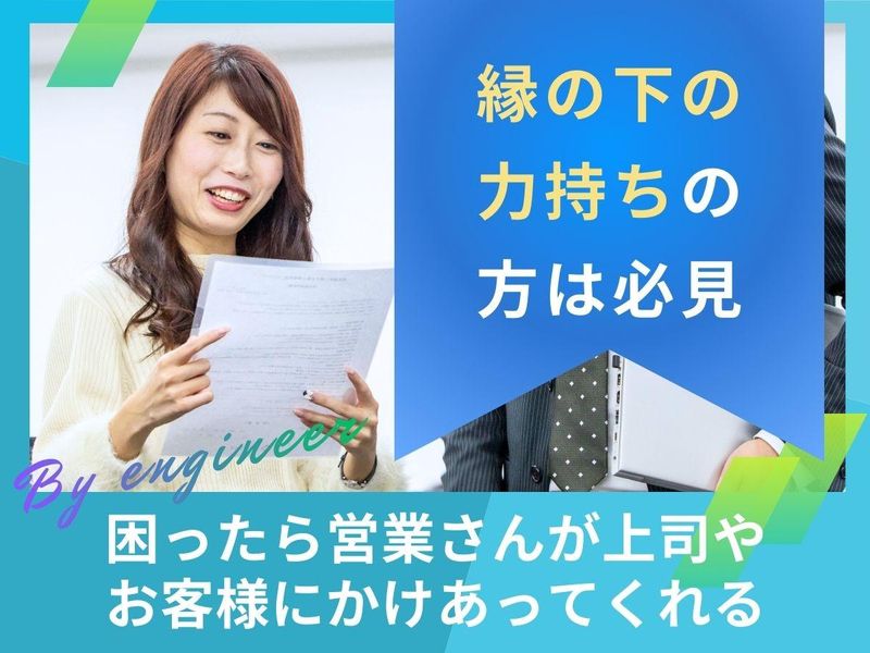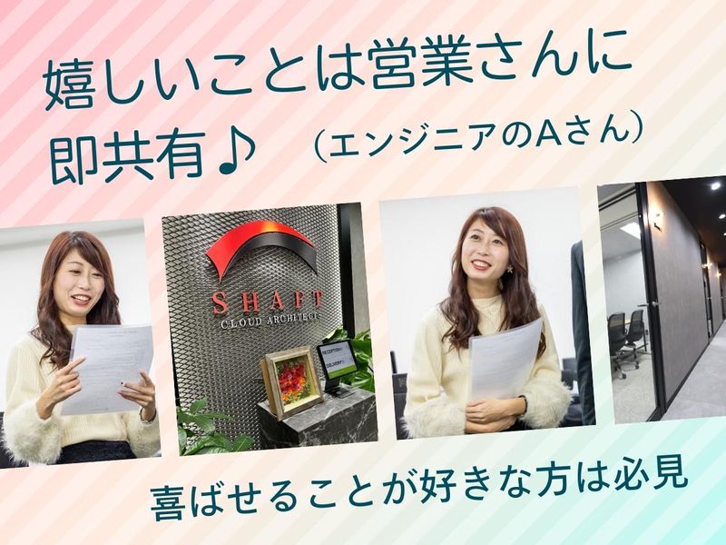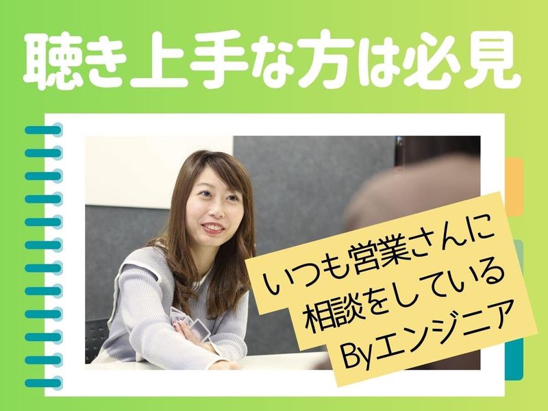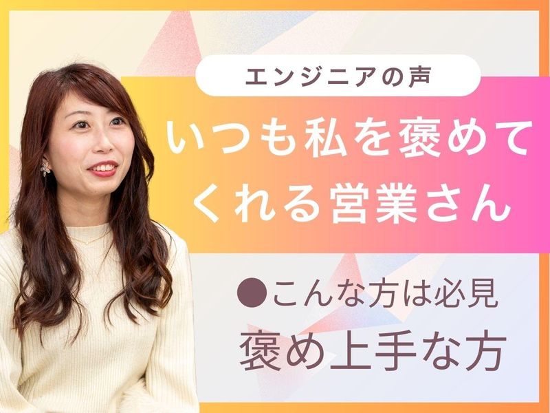 仕事内容 【この求人のポイント】 ◆未経験から「ITのプロ」へ! 専門知識は入社後に。先輩の8割が異業種からのスタートです。 ◆20代が主役の職場! 同世代が多く、分からないことも相談しやすいフラットな社風です。 ◆恵比寿で叶えるワークライフバランス! 年間休日125日、残業は月平均5h以下。プライベートも充実 ◆定期的に社内イベントを実施!職種の垣根を越えて交流する機会があります。 【具体的には】 IT企業のお客様へ、ソフトウェア開発やインフラ構築などに 必要なエンジニアを提案、マッチングしていくITソリューション営業です。 慣れてきたら、弊社エンジニアのマネジメント業務やエンジニアの採用業務など、 様々な業務にもチャレンジ出来ます! 【仕事の流れ(一部)】 ■先輩社員のフォローの下でメールによるエンジニア案件マッチング業務 お客様への定期的なご連絡を通じて、必要なエンジニア情報を取得。 メールや電話を使って、エンジニアと案件を繋げる仕事を担当してもらいます。 最初は先輩社員がしっかりとサポートしていきますので、 専門的な知識や難しい交渉などはないので安心してください。 また、慣れてきたら担当エンジニアとの定期的なキャリアヒアリングも実施。 エンジニアのキャリアを一緒に作っていくことも重要な役割を担っています。 エンジニアの良い相談役として日々のフォローをお任せします。 IT知識はもちろん、ITソリューション営業としての 経験も身に付けられる仕事です! 【社風について】 「技術者にとっても、営業にとっても楽しい会社」 代表の山崎が「働く人が主役」という想いで作った会社です。 20代・30代の若手メンバーが中心で、社内はいつも活気があります。 また、イベントもBBQやボードゲーム、ランチ会など、部署の垣根を越えた交流があります(※自由参加なので、プライベート優先ももちろんOK!)。 フラットな関係性で上下関係が厳しくなく、役職名ではなく「さん」付けで呼び合う風土も弊社らしさだと思います!