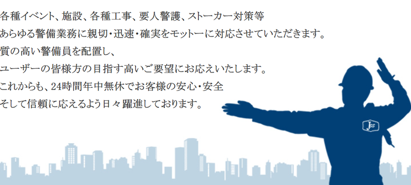 求めている人材 ・未経験者大歓迎! ・商業施設、福祉施設、公共施設、学校、イベント会場、ライブ会場等で 警備、交通誘導などの経験がある方も大歓迎! ・ミドル世代、シニア世代活躍中! ・定年退職後、まだまだ頑張りたい方を応援! 年齢の条件と理由:あり(18歳以上(警備業法により))