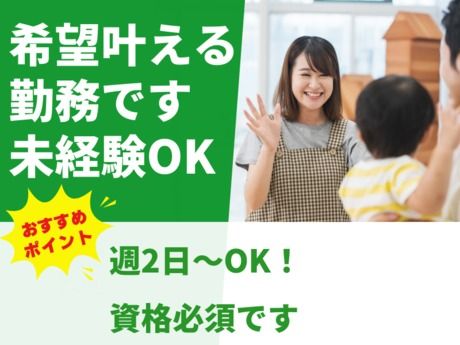 <★保育士資格者歓迎!>未経験OK!週2~3日勤務や週末のみの勤務も相談可♪