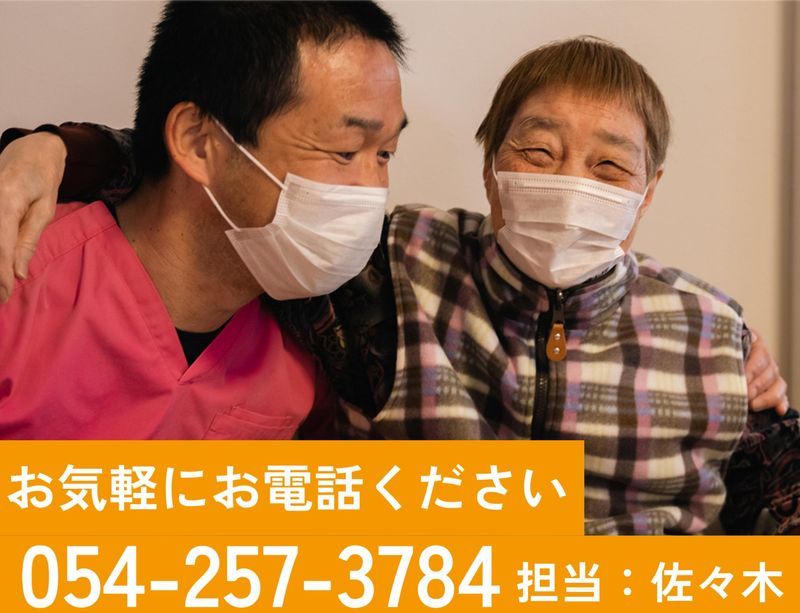 仕事内容 介護職・未経験の方も大歓迎! 利用者様の笑顔がやりがいに…✨ 家族のようなあたたかいチームで 心和む介護のおしごとをしませんか☘ シフトの融通はばっちり◎ 働き方の希望を聞かせてください。 面接・勤務は年明けからでもOKですよ☺ 「誰かのために」を大切にできる。 そんなあなたを歓迎します! ******************* 【おしごと内容】 看護小規模多機能生活介護施設での おしごとです。 日常生活が困難な方でも 看護士がいる環境で穏やかに生活をおくる サポートを、仲間としてみませんか✨ <主な内容> ・お食事の準備、配膳、片付け ・入浴や排せつなどの見守りや介助 ・お話し相手や見守り ・レクリエーションのサポート (合唱・映画鑑賞・お散歩など) ・記録や申し送り等、チーム内の連携業務 ⭐介護職の経験がない方もご安心ください。 ベテランが丁寧にフォローします。 未経験から始めた方も、3ヶ月ほどで 安心して利用者様と関われるように なりますよ。 ⭐「日勤メインで」「日曜は休みたい」 といった相談も可能。 家庭の事情に合わせ、柔軟にシフトを 組めるのでご安心くださいね。 ******************* 【スタッフの声】 子どもの頃、大好きだったおばあちゃん。 おばあちゃんがくれた温かさ、優しさを 今度は自分が返す番だと思っています。 利用者様からの「ありがとう」が 本当に嬉しくて、“人のために働く”って こういうことなんだな、と感じます。 職員同士の関係も温かく、朝から元気な 笑顔であふれている職場です。 ******************* 【この仕事のやりがい・メリット】 毎日の小さな会話や笑顔のやり取りが、 何よりのやりがいです✨ 資格や経験よりも 「相手を思いやる気持ち」が何より大切。 利用者様の笑顔を引き出せた瞬間、 「この仕事をしていて良かった」と 実感できます☺ また、週2日~OKの柔軟シフトなので、 子育て世代やブランク明けの方も 無理なく働けます。 夜勤でしっかり稼ぐ働き方も可能です。 ******************* お子さまの手が離れ、 そろそろ社会復帰を考えているあなた。 ブランクがあっても大丈夫! 明るいスタッフが、 笑顔で教えてくれるあたたかい職場です。 「久しぶりの仕事だから不安…」 そんな気持ちに寄り添い、 あなたのペースで慣れていける環境が 整っていますよ☀ *...*...*...*...*...*...*...* ご応募はお電話でも大歓迎です! ✨054-257-3784✨ 担当:佐々木 *...*...*...*...*...*...*...* *******************
