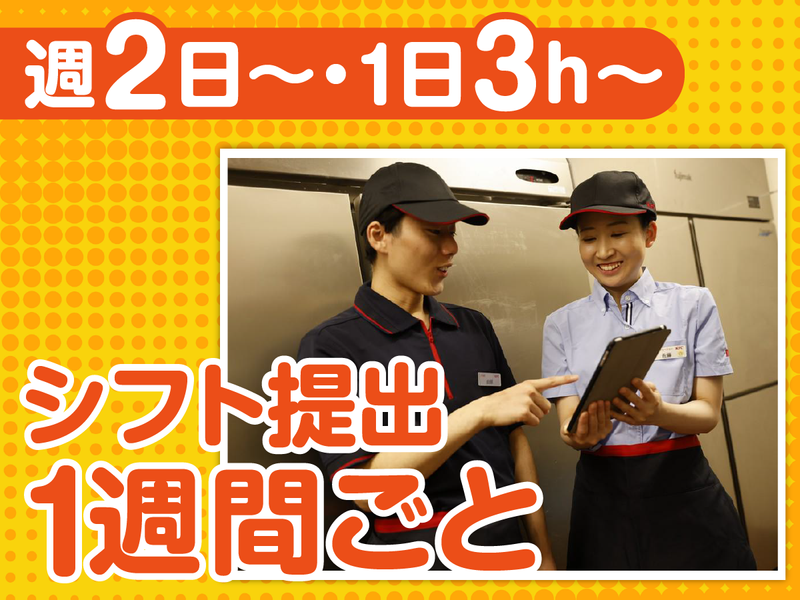 仕事内容 ケンタッキー・フライド・チキンの 販売・接客スタッフのアルバイト募集♪ ■ネット応募で簡単♪面接随時実施中! ■週2日3時間~OK!1週間毎のシフト提出 ■特別価格でケンタッキーが買える社割有! 未経験ok!学生・フリーター大歓迎♪ 明るく元気な店長のもとKFCで 「楽しく・自分らしく」働こう! * * * * カウンター越しにお客様対応をお任せ! ◆ご注文内容の確認 ◆お持ち帰りの準備・ご提供 ◆ドリンク作りなど簡単な調理補助 ◆簡単な店内清掃 など …セルフオーダーも導入中!! <独り立ちまで徹底サポート!> 入社後は丁寧な研修あり! ▷動画マニュアルの視聴や本番をイメージ しながら実践の練習を通してスキルを 身に着けていきましょう! ▷研修期間終了後も定期的な振り返りで しっかりフォローします! 自分のペースで確実に成長していける環境で 働けます♪ * * * * ●ネット応募方法 ・「応募画面へ進む」をクリック ・必須項目を入力 ・応募完了! ●電話応募はコチラ 0120‐987-705 …………………………………………… □応募⇒面接⇒採用 □ご応募後は、メールまたはお電話にて 選考のご案内をいたしますので確認漏れが 無いようにご注意ください。