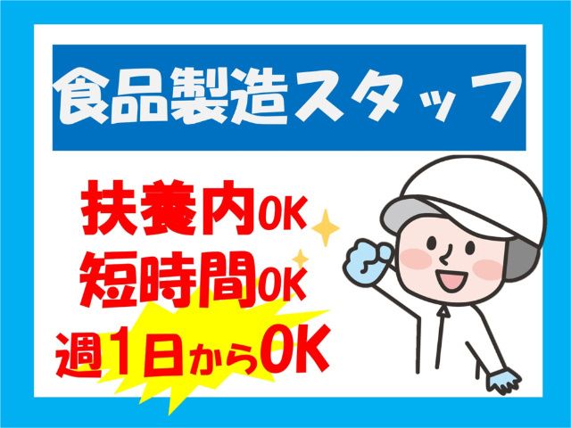 週1日から勤務OK|曜日選べます|短時間OK|扶養内OK|夕方から|日払いOK|食品製造スタッフ急募