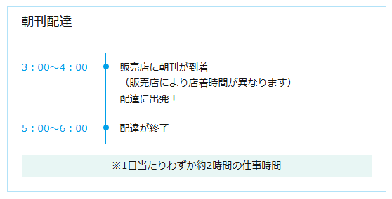 仕事内容 新聞配達朝刊スタッフの募集になります。早朝の隙間時間を活用して稼ぎたい方へおすすめです。